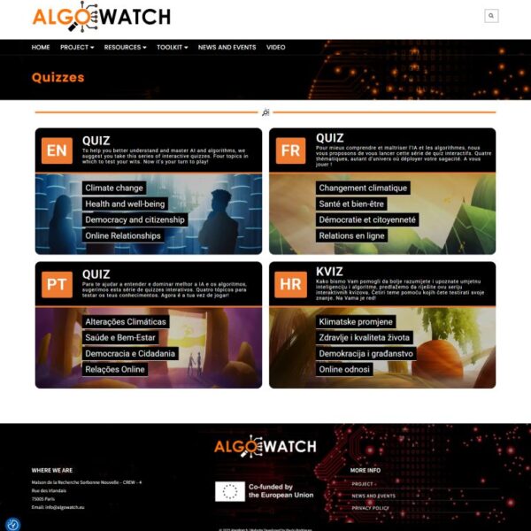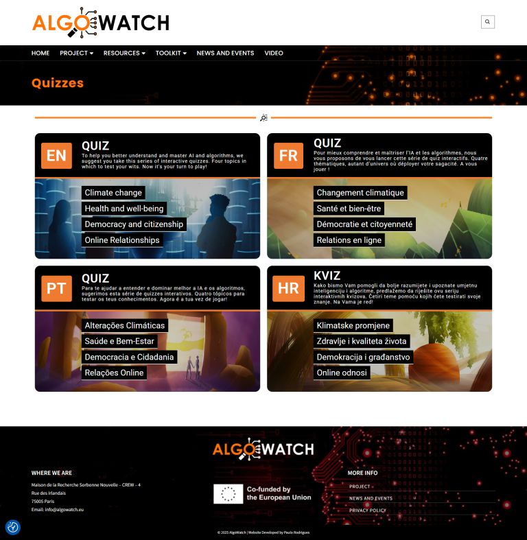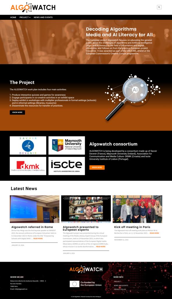Para o projeto de investigação europeu Algowatch fui desafiado a criar um site que agregasse toda a informação, notícias e atividades do projeto.