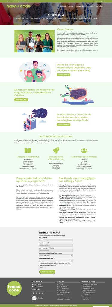 Desenvolvimento de nova versão do site da Happy Code, uma escola de tecnologia que tem como missão formar pensadores, criadores e empreendedores do futuro.